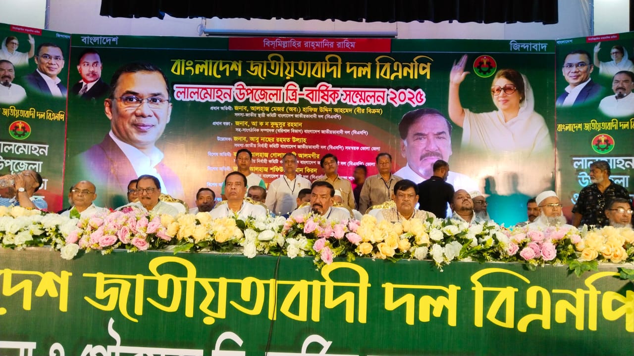 ২৬ জুলাই ২০২৫, শনিবার ব্যাপক উৎসাহ-উদ্দীপনার মধ্য দিয়ে অনুষ্ঠিত হয়েছে লালমোহন উপজেলা বিএনপির ত্রি-বার্ষিক সম্মেলন ২০২৫। সম্মেলনে প্রধান অতিথি হিসেবে উপস্থিত ছিলেন বিএনপির স্থায়ী কমিটির সদস্য মেজর (অব.) হাফিজ উদ্দিন আহমেদ বীর বিক্রম।